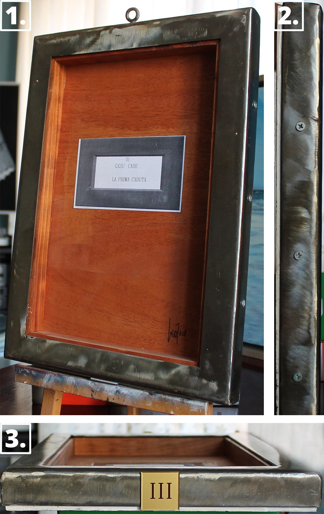Focalizzai la mia attenzione su due elementi: il Legno (su cui dipinsi le scene) ed il Ferro, materiale di cui dovevano essere fatte le